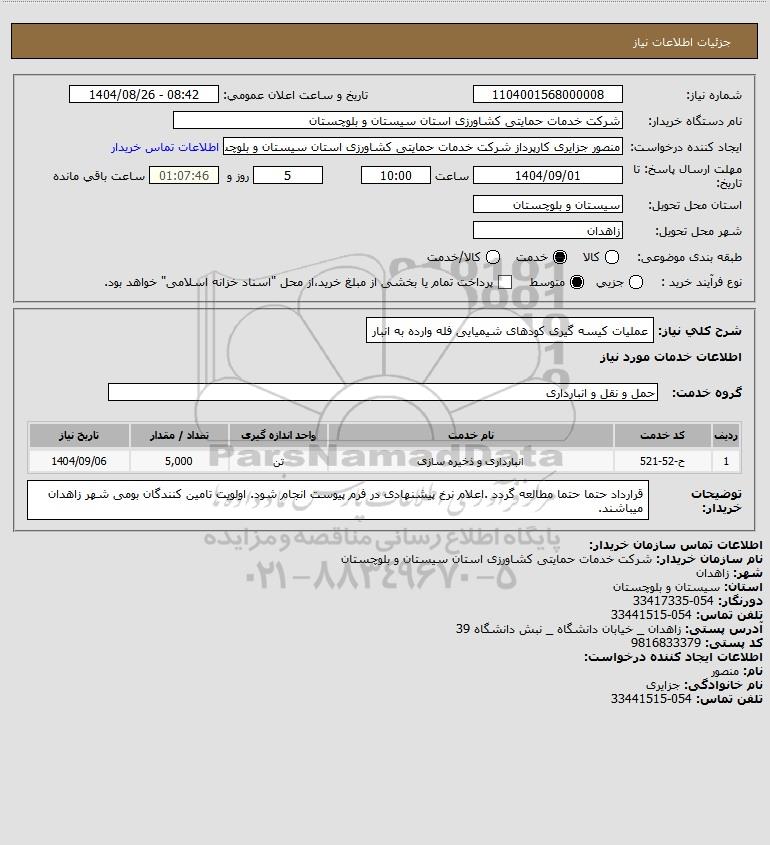 تلفن:5- 88349670 (021) فکس: 88349673 (021) Website: www.ParsNamadData.com E-mail: Info@ParsNamadData.com استعلام عملیات کیسه گیری کودهای شیمیایی فله وارده به انبار