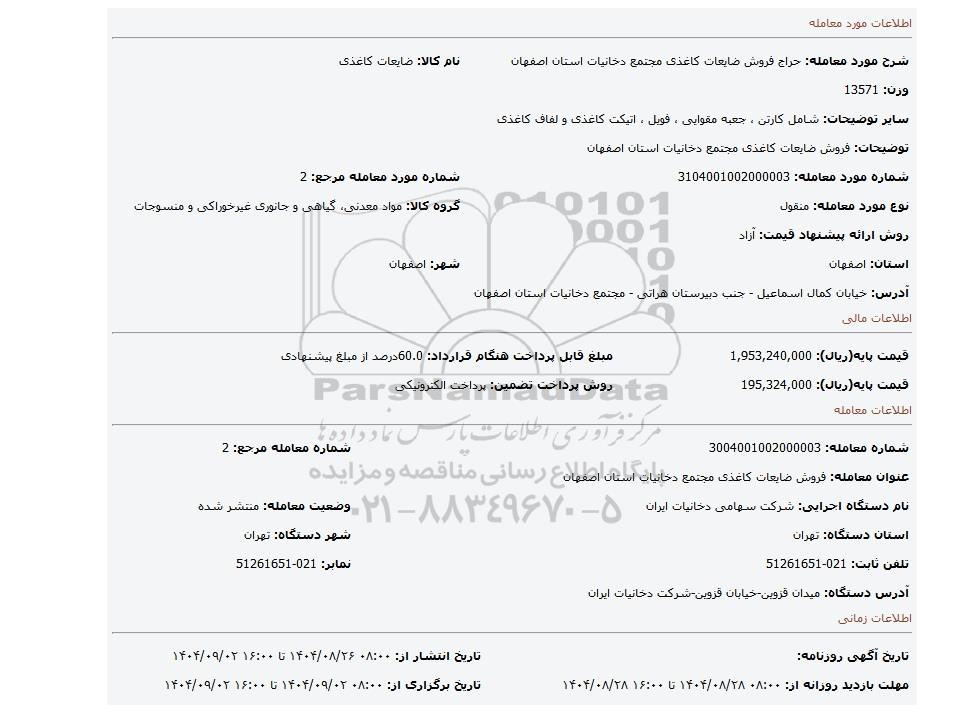 مزایده فروش ضایعات کاغذی مجتمع دخانیات استان اصفهان