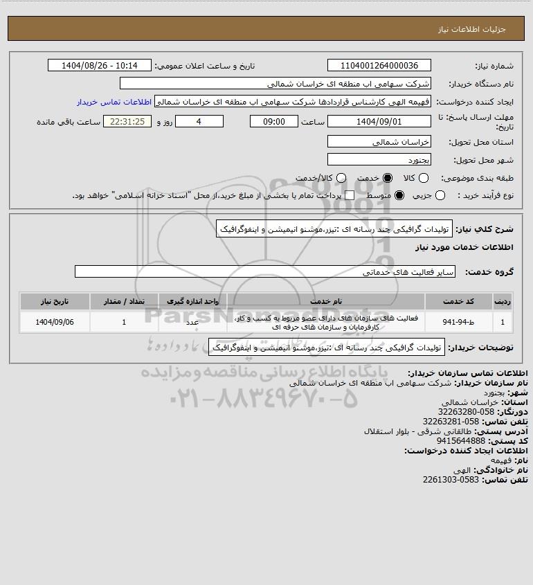 تلفن:5- 88349670 (021) فکس: 88349673 (021) Website: www.ParsNamadData.com E-mail: Info@ParsNamadData.com استعلام تولیدات گرافیکی چند رسانه ای :تیزرموشنو انیمیشن و اینفوگرافیک