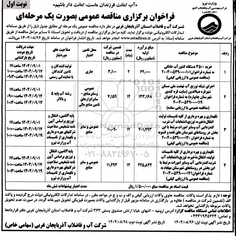 تلفن:5- 88349670 (021) فکس: 88349673 (021) Website: www.ParsNamadData.com E-mail: Info@ParsNamadData.com مناقصه خرید 3500 دستگاه کنتور آب خانگی...