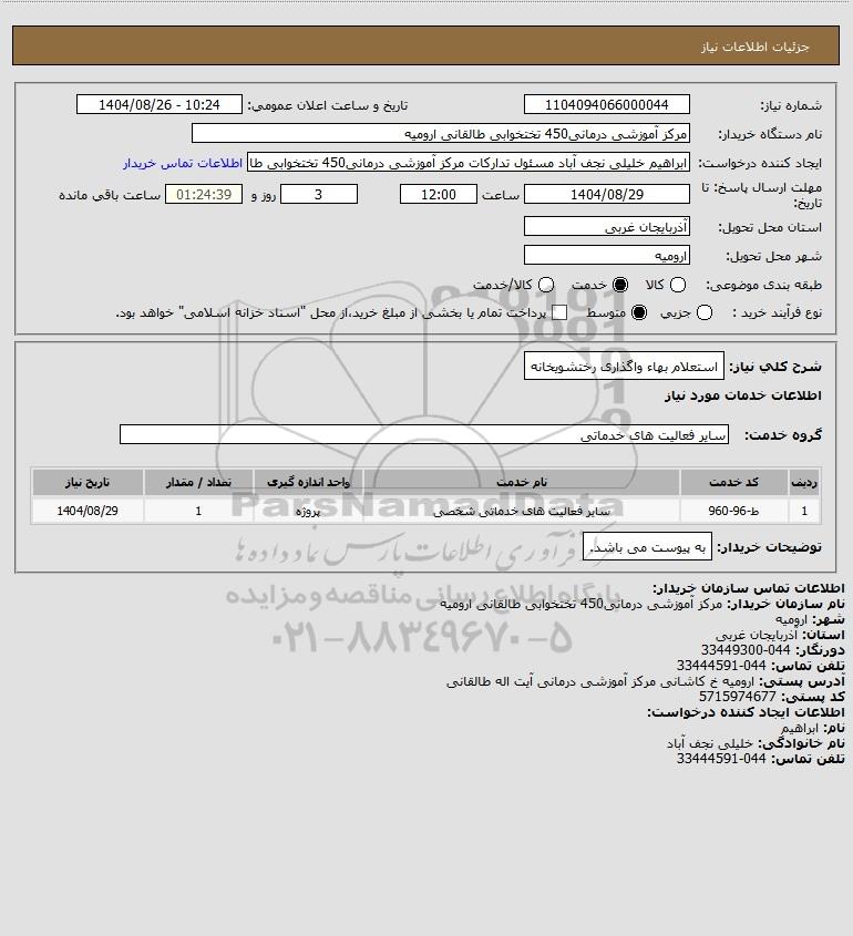 تلفن:5- 88349670 (021) فکس: 88349673 (021) Website: www.ParsNamadData.com E-mail: Info@ParsNamadData.com استعلام استعلام بهاء واگذاری رختشویخانه