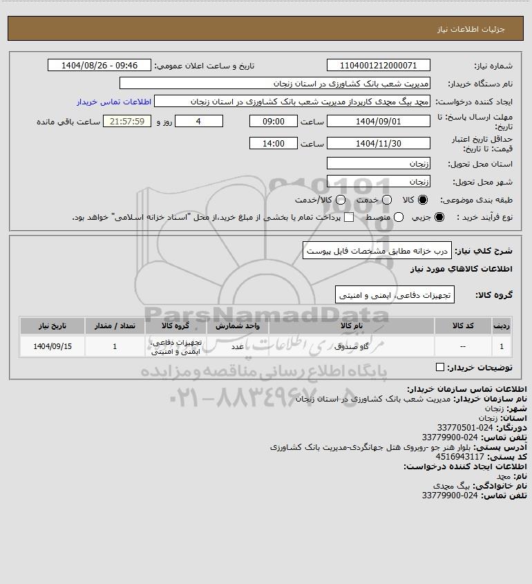 تلفن:5- 88349670 (021) فکس: 88349673 (021) Website: www.ParsNamadData.com E-mail: Info@ParsNamadData.com استعلام درب خزانه مطابق مشخصات فایل پیوست