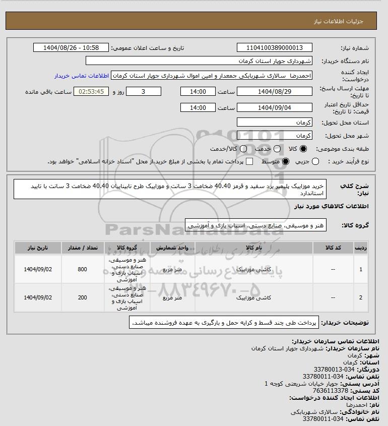 تلفن:5- 88349670 (021) فکس: 88349673 (021) Website: www.ParsNamadData.com E-mail: Info@ParsNamadData.com استعلام خرید موزاییک پلیمیر یزد سفید و قرمز 40.40 ضخامت 3 سانت و موزاییک طرح نابیناییان 40.40 ضخامت 3 سانت با تایید استاندارد