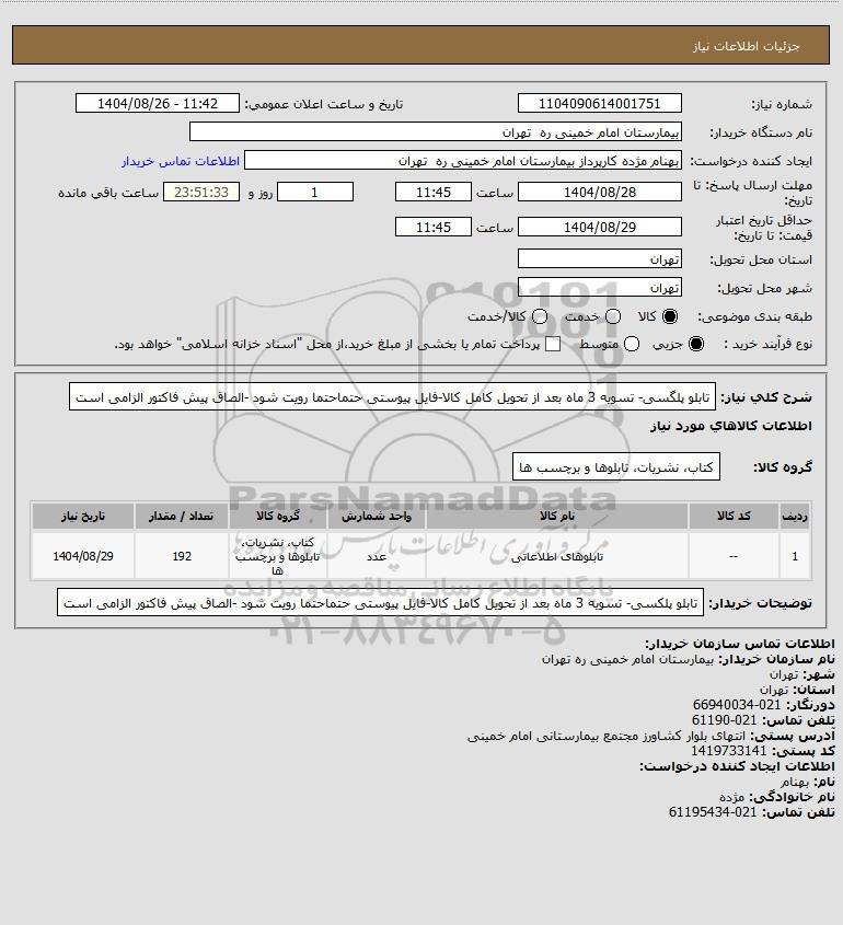 تلفن:5- 88349670 (021) فکس: 88349673 (021) Website: www.ParsNamadData.com E-mail: Info@ParsNamadData.com استعلام تابلو پلگسی- تسویه 3 ماه بعد از تحویل کامل کالا-فایل پیوستی حتماحتما رویت شود -الصاق پیش فاکتور الزامی است
