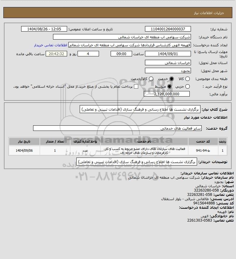 تلفن:5- 88349670 (021) فکس: 88349673 (021) Website: www.ParsNamadData.com E-mail: Info@ParsNamadData.com استعلام برگزاری نشست ها اطلاع رسانی و فرهنگ سازی (اقدامات تبیینی و تعاملی)