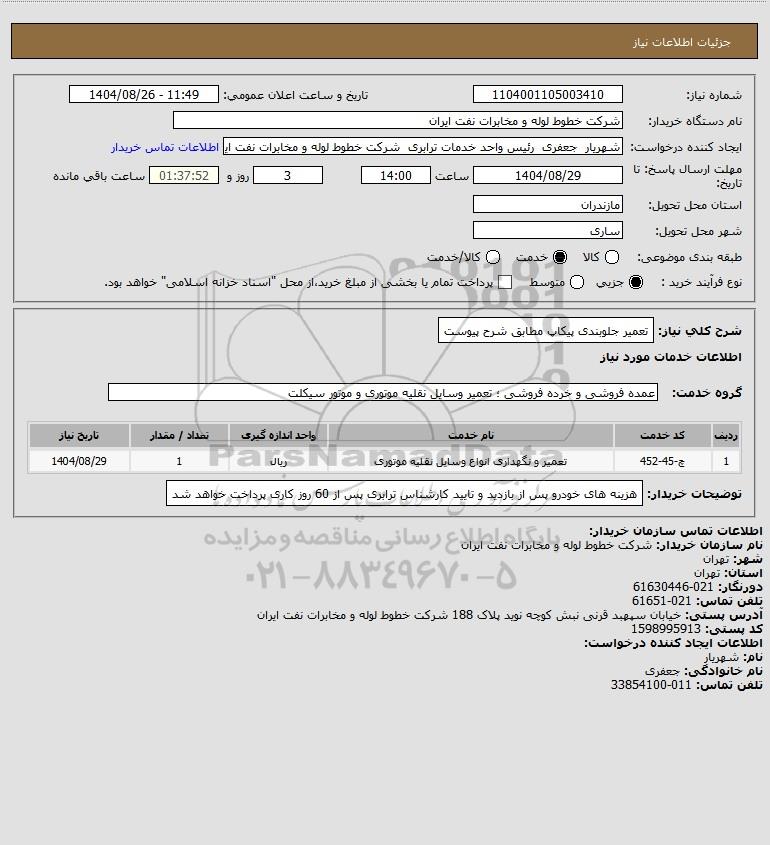 تلفن:5- 88349670 (021) فکس: 88349673 (021) Website: www.ParsNamadData.com E-mail: Info@ParsNamadData.com استعلام تعمیر جلوبندی پیکاپ مطابق شرح پیوست