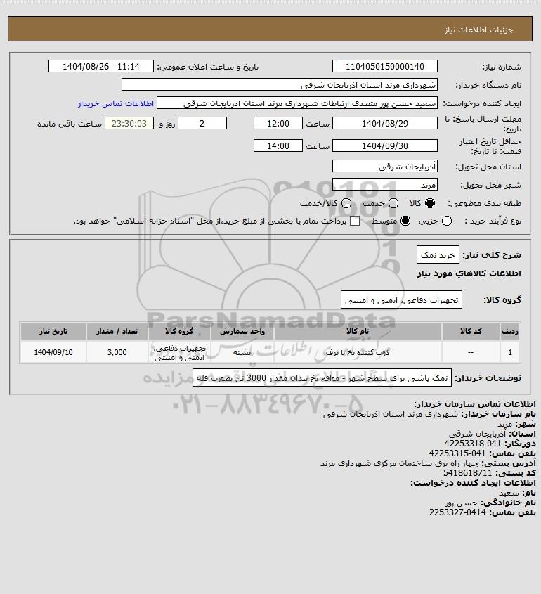 تلفن:5- 88349670 (021) فکس: 88349673 (021) Website: www.ParsNamadData.com E-mail: Info@ParsNamadData.com استعلام خرید نمک