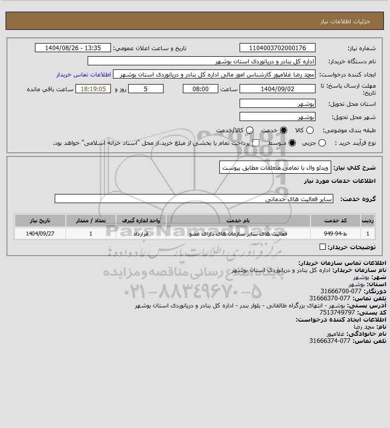 تلفن:5- 88349670 (021) فکس: 88349673 (021) Website: www.ParsNamadData.com E-mail: Info@ParsNamadData.com استعلام ویدئو وال با تمامی متعلقات مطابق پیوست