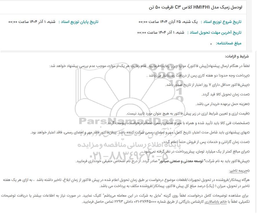 | عنوان آگهی: استعلام لودسل زمیک مدل HM14H1 کلاس C3 ظرفیت 50 تن |