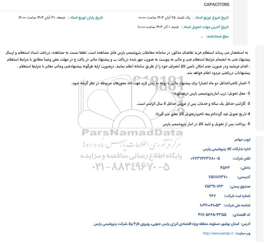 | عنوان آگهی: استعلام CAPACITORS |