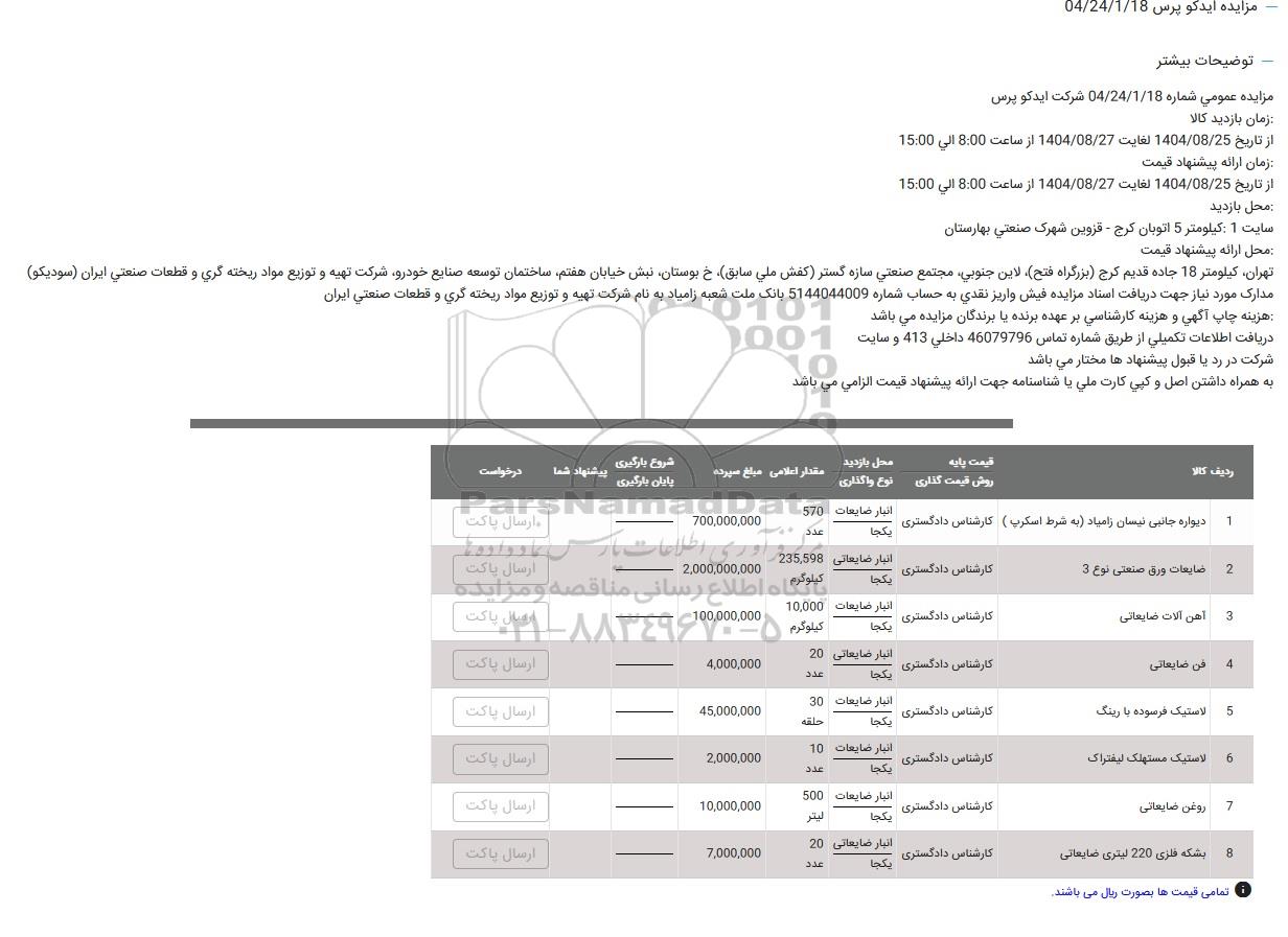 مزایده عمومی شماه 04/24/1/18 شرکت ایدکو پرس