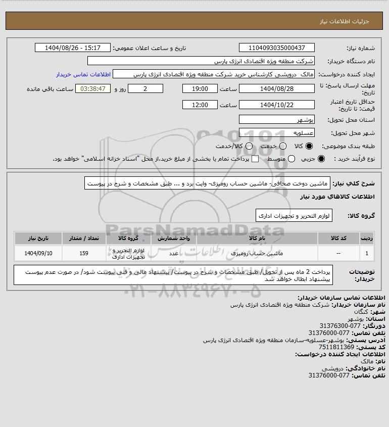 تلفن:5- 88349670 (021) فکس: 88349673 (021) Website: www.ParsNamadData.com E-mail: Info@ParsNamadData.com استعلام ماشین دوخت صحافی- ماشین حساب رومیزی- وایت برد و ... طبق مشخصات و شرح در پیوست