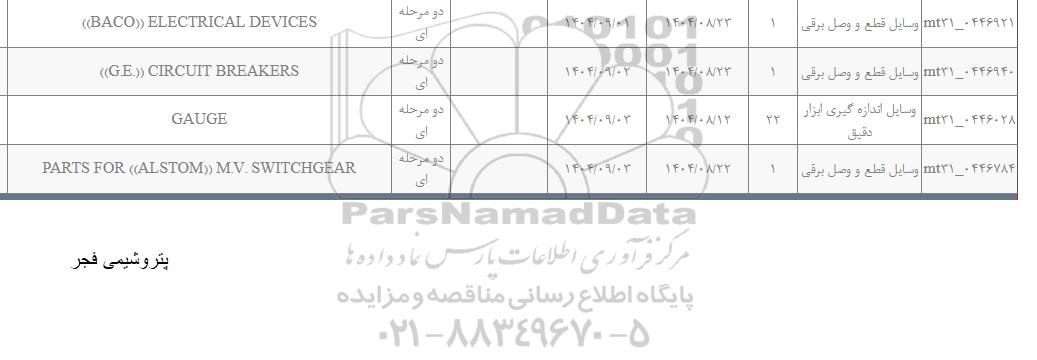 تلفن:5- 88349670 (021) فکس: 88349673 (021) Website: www.ParsNamadData.com E-mail: Info@ParsNamadData.com استعلام BACO)) ELECTICAL DEVICES))