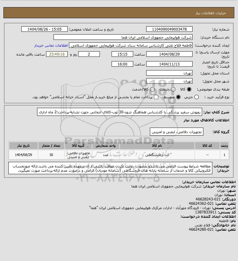 تلفن:5- 88349670 (021) فکس: 88349673 (021) Website: www.ParsNamadData.com E-mail: Info@ParsNamadData.com استعلام روپوش سفید پزشکی با کارشناس هماهنگ شود-30 ثوب-کالای انتخابی جهت تشابه-پرداخت:2 ماه اداری