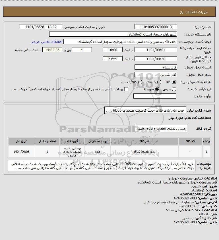 تلفن:5- 88349670 (021) فکس: 88349673 (021) Website: www.ParsNamadData.com E-mail: Info@ParsNamadData.com استعلام خرید اتاق باری فلزی جهت کامیونت هیوندای HD65 ... .
