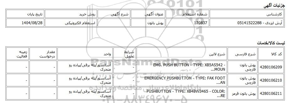 عنوان آگهی: استعلام الکترونیکی پوش باتون