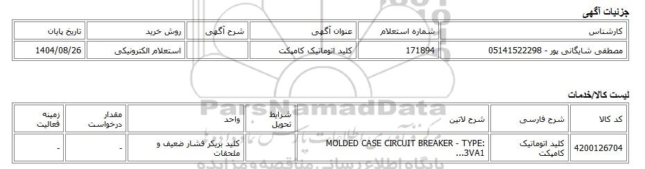 تلفن:5- 88349670 (021) فکس: 88349673 (021) Website: www.ParsNamadData.com E-mail: Info@ParsNamadData.com استعلام الکترونیکی کلید اتوماتیک کامپکت