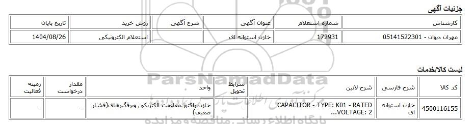 تلفن:5- 88349670 (021) فکس: 88349673 (021) Website: www.ParsNamadData.com E-mail: Info@ParsNamadData.com استعلام الکترونیکی خازن استوانه ای