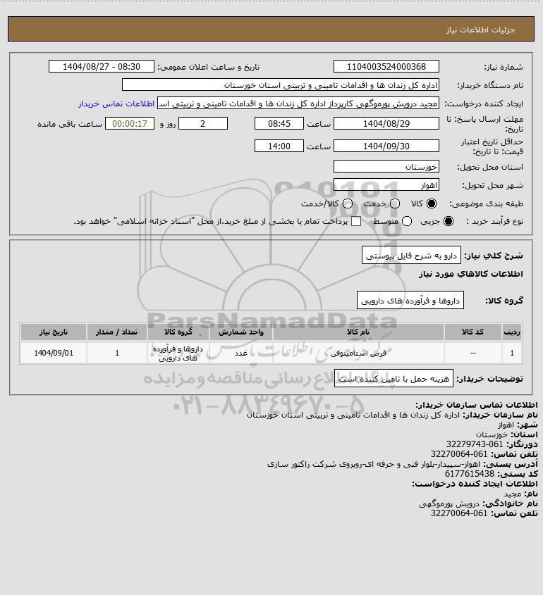 تلفن:5- 88349670 (021) فکس: 88349673 (021) Website: www.ParsNamadData.com E-mail: Info@ParsNamadData.com استعلام دارو به شرح فایل پیوستی
