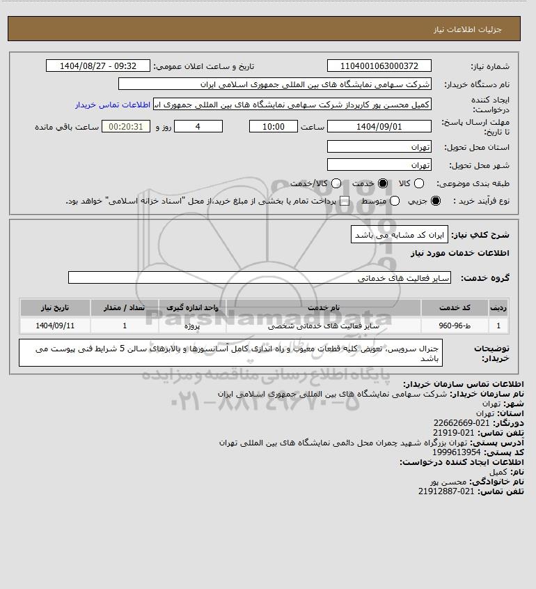 شرح کلی نیاز: ایران کد مشابه می باشد