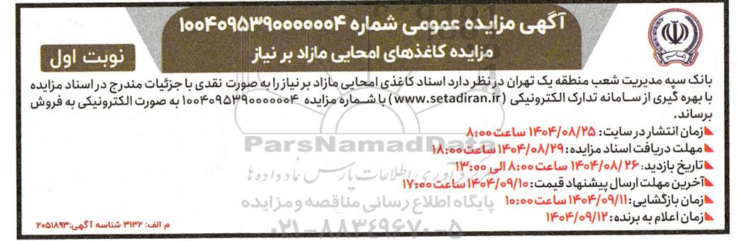 تلفن:5- 88349670 (021) فکس: 88349673 (021) Website: www.ParsNamadData.com E-mail: Info@ParsNamadData.com مزایده فروش کاغذهای امحایی مازاد بر نیاز