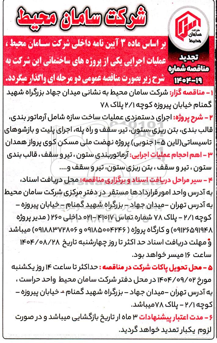 تجدید مناقصه شماره 19- 1404