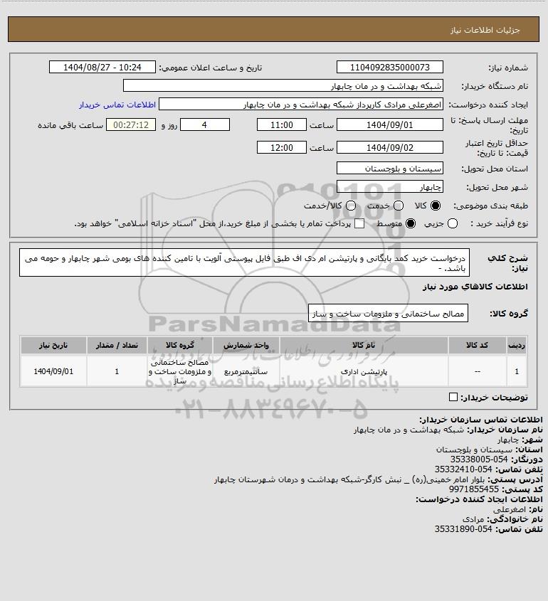 تلفن:5- 88349670 (021) فکس: 88349673 (021) Website: www.ParsNamadData.com E-mail: Info@ParsNamadData.com استعلام درخواست خرید کمد بایگانی و پارتیشن ام دی اف طبق فایل پیوستی