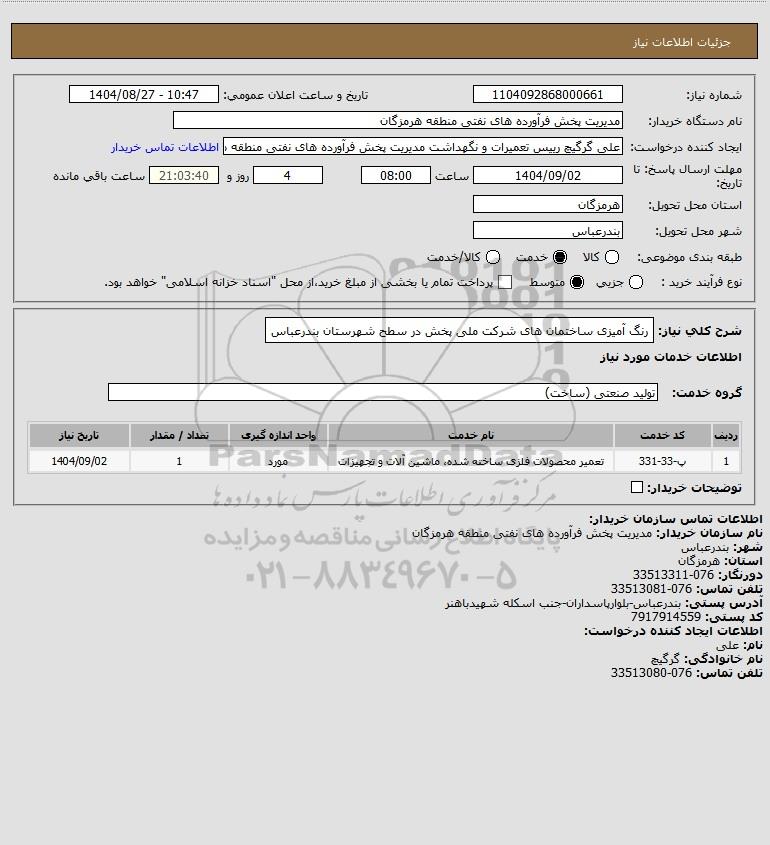 تلفن:5- 88349670 (021) فکس: 88349673 (021) Website: www.ParsNamadData.com E-mail: Info@ParsNamadData.com استعلام رنگ آمیزی ساختمان های شرکت ملی پخش در سطح شهرستان بندرعباس