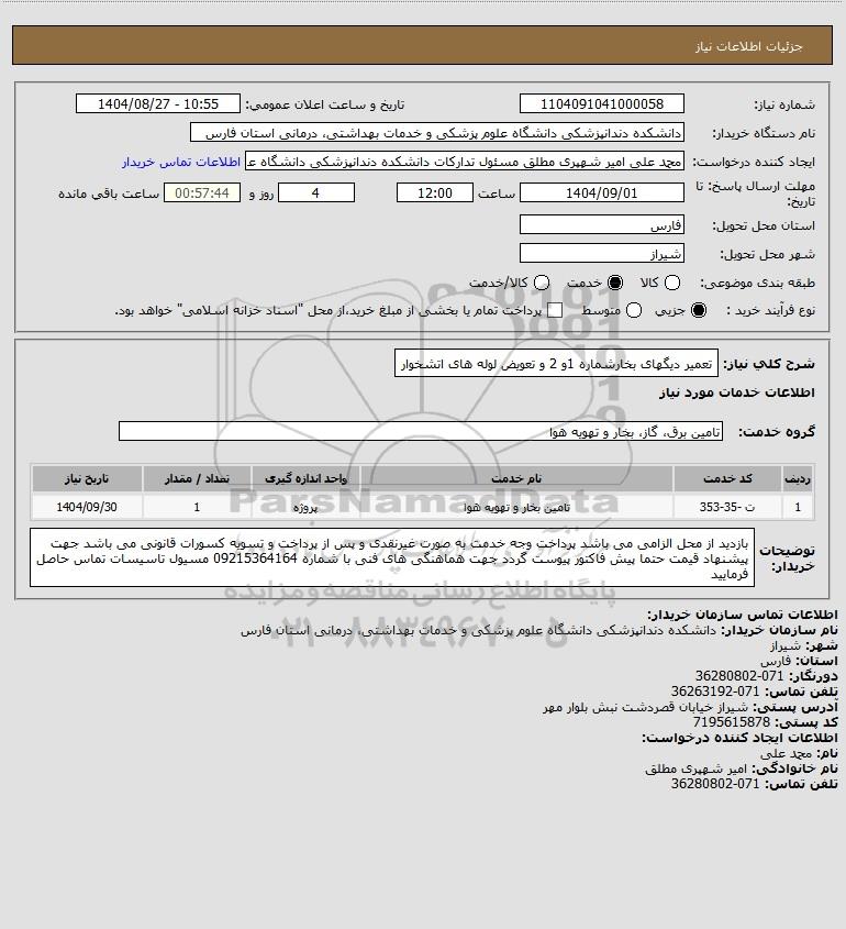 تلفن:5- 88349670 (021) فکس: 88349673 (021) Website: www.ParsNamadData.com E-mail: Info@ParsNamadData.com استعلام تعمیر دیگهای بخارشماره 1و 2 و تعویض لوله های اتشخوار