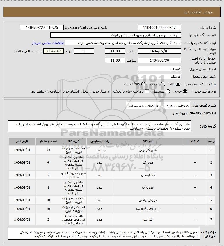 تلفن:5- 88349670 (021) فکس: 88349673 (021) Website: www.ParsNamadData.com E-mail: Info@ParsNamadData.com استعلام درخواست خرید شیر و اتصالات تاسیساتی