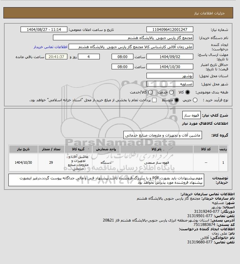 تلفن:5- 88349670 (021) فکس: 88349673 (021) Website: www.ParsNamadData.com E-mail: Info@ParsNamadData.com استعلام قهوه ساز