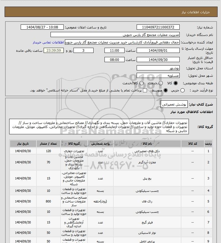 تلفن:5- 88349670 (021) فکس: 88349673 (021) Website: www.ParsNamadData.com E-mail: Info@ParsNamadData.com استعلام پوشش تعمیراتی