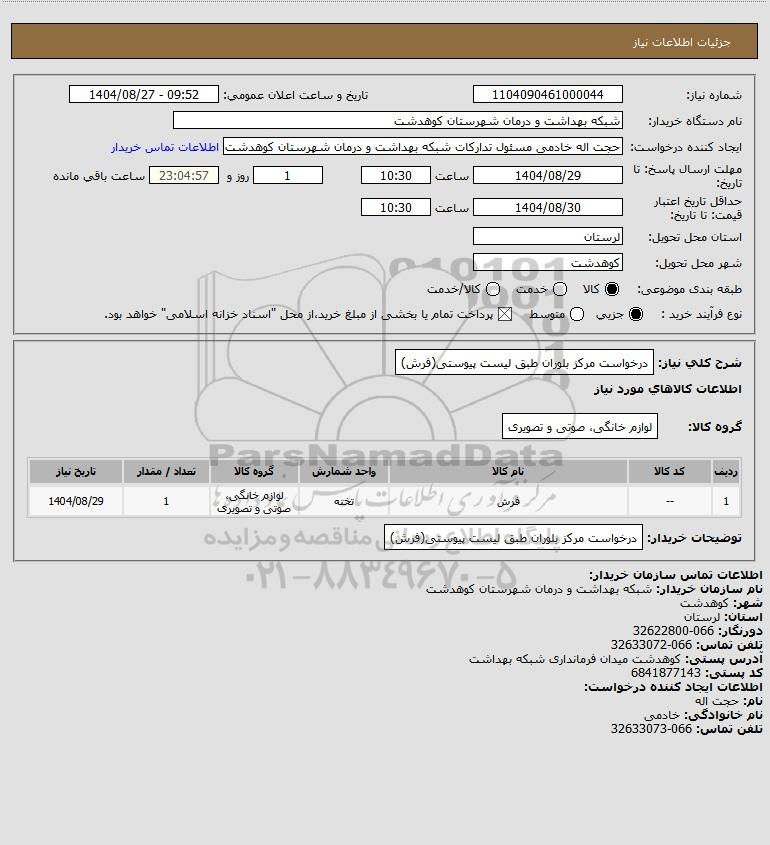 تلفن:5- 88349670 (021) فکس: 88349673 (021) Website: www.ParsNamadData.com E-mail: Info@ParsNamadData.com استعلام درخواست مرکز بلوران طبق لیست پیوستی(فرش)