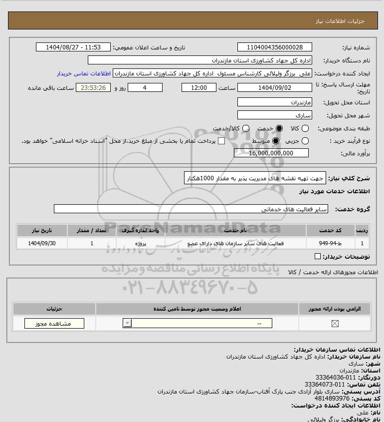 تلفن:5- 88349670 (021) فکس: 88349673 (021) Website: www.ParsNamadData.com E-mail: Info@ParsNamadData.com استعلام جهت تهیه نقشه های مدیریت پذیر به مقدار 1000هکتار