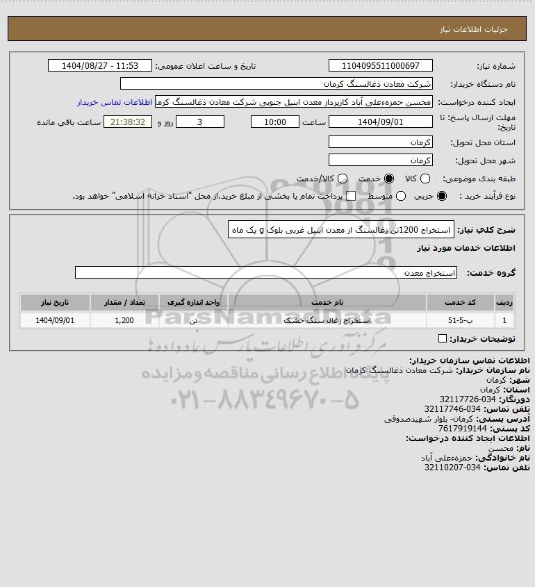 تلفن:5- 88349670 (021) فکس: 88349673 (021) Website: www.ParsNamadData.com E-mail: Info@ParsNamadData.com استعلام استخراج 1200تن زغالسنگ از معدن ابنیل غربی بلوک g یک ماه