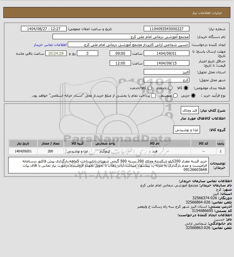 تلفن:5- 88349670 (021) فکس: 88349673 (021) Website: www.ParsNamadData.com E-mail: Info@ParsNamadData.com استعلام قند وچای