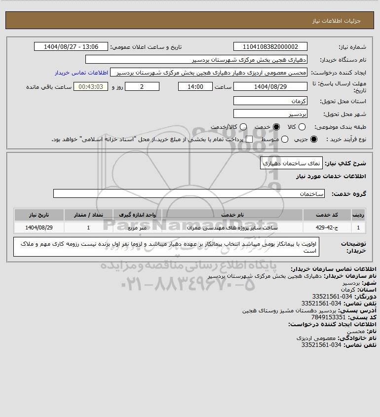 تلفن:5- 88349670 (021) فکس: 88349673 (021) Website: www.ParsNamadData.com E-mail: Info@ParsNamadData.com استعلام نمای ساختمان دهیاری