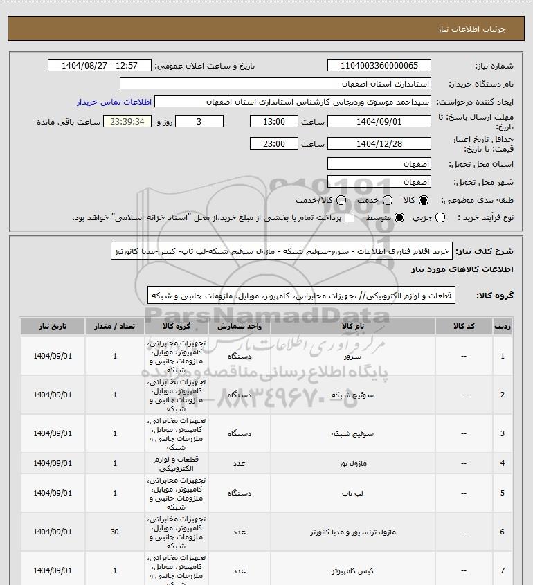 تلفن:5- 88349670 (021) فکس: 88349673 (021) Website: www.ParsNamadData.com E-mail: Info@ParsNamadData.com استعلام خرید اقلام فناوری اطلاعات - سرور-سوئیچ شبکه - ماژول سوئیچ شبکه-لپ تاپ- کیس-مدیا کانورتوز