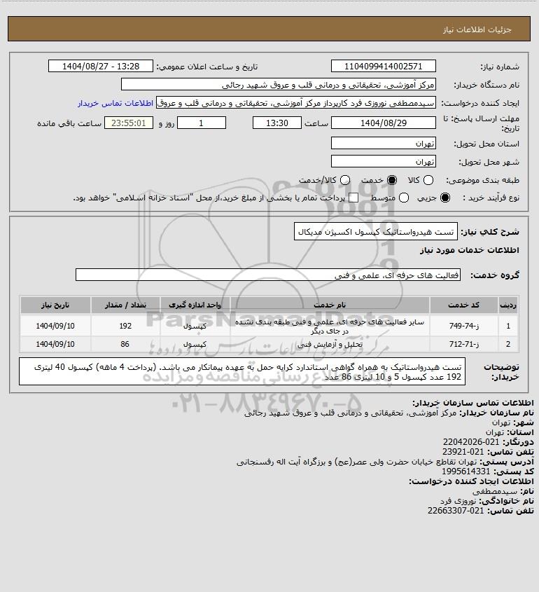 تلفن:5- 88349670 (021) فکس: 88349673 (021) Website: www.ParsNamadData.com E-mail: Info@ParsNamadData.com استعلام تست هیدرواستاتیک کپسول اکسیژن مدیکال