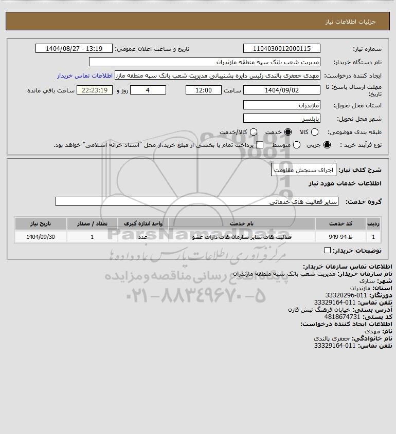 تلفن:5- 88349670 (021) فکس: 88349673 (021) Website: www.ParsNamadData.com E-mail: Info@ParsNamadData.com استعلام اجرای سنجش مقاومت