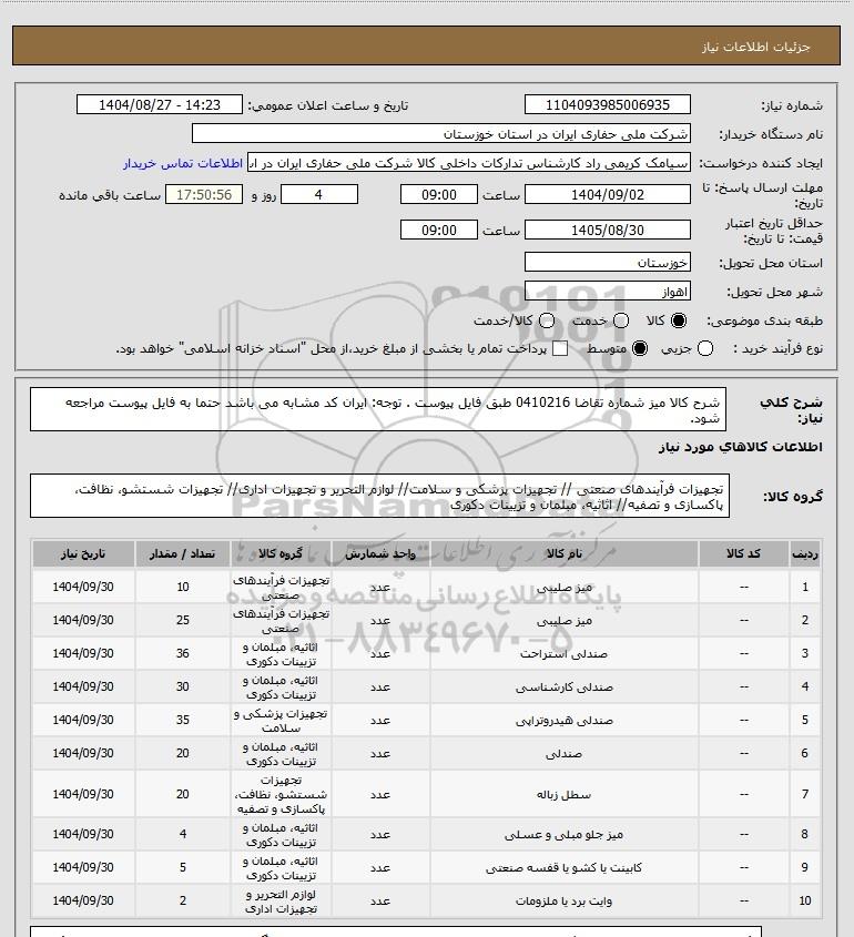 تلفن:5- 88349670 (021) فکس: 88349673 (021) Website: www.ParsNamadData.com E-mail: Info@ParsNamadData.com استعلام شرح کالا میز شماره تقاضا 0410216 طبق فایل پیوست . توجه: ایران کد مشابه می باشد حتما به فایل پیوست مراجعه شود.