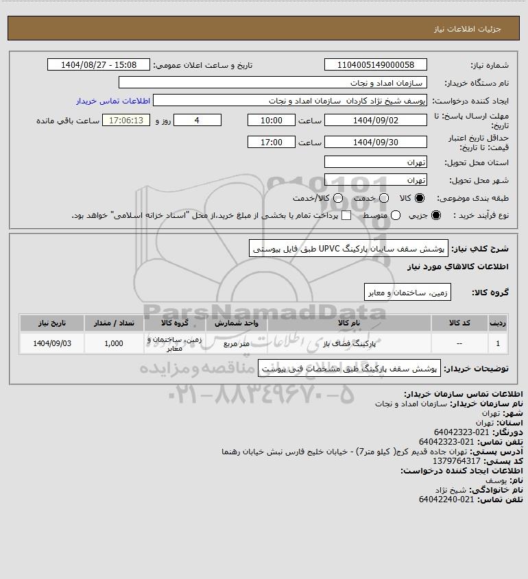 تلفن:5- 88349670 (021) فکس: 88349673 (021) Website: www.ParsNamadData.com E-mail: Info@ParsNamadData.com استعلام پوشش سقف سایبان پارکینگ UPVC طبق فایل پیوستی