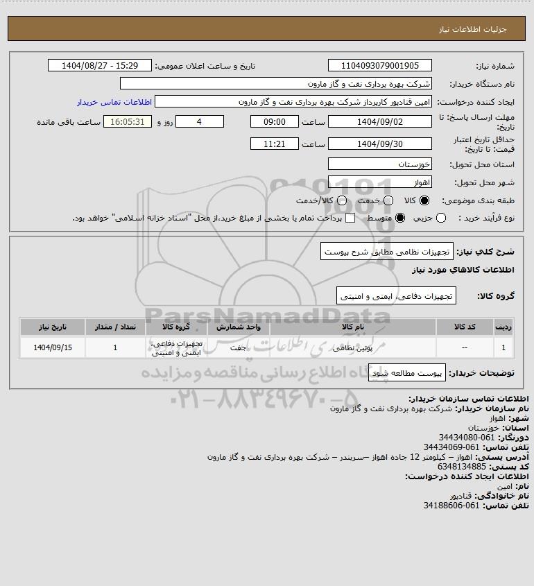 تلفن:5- 88349670 (021) فکس: 88349673 (021) Website: www.ParsNamadData.com E-mail: Info@ParsNamadData.com استعلام تجهیزات نظامی مطابق شرح پیوست