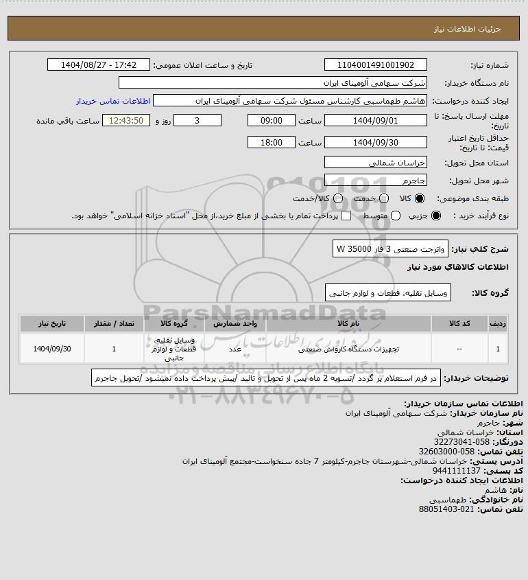 تلفن:5- 88349670 (021) فکس: 88349673 (021) Website: www.ParsNamadData.com E-mail: Info@ParsNamadData.com استعلام واترجت صنعتی 3 فاز W 35000