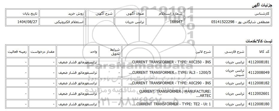 تلفن:5- 88349670 (021) فکس: 88349673 (021) Website: www.ParsNamadData.com E-mail: Info@ParsNamadData.com استعلام الکترونیکی ترانس جریان