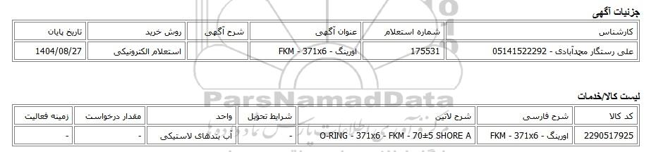 تلفن:5- 88349670 (021) فکس: 88349673 (021) Website: www.ParsNamadData.com E-mail: Info@ParsNamadData.com استعلام الکترونیکی اورینگ - FKM - 371x6