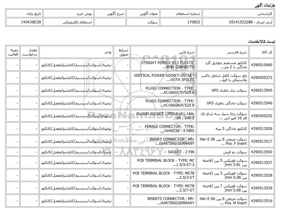 تلفن:5- 88349670 (021) فکس: 88349673 (021) Website: www.ParsNamadData.com E-mail: Info@ParsNamadData.com استعلام الکترونیکی سوکت