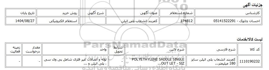 تلفن:5- 88349670 (021) فکس: 88349673 (021) Website: www.ParsNamadData.com E-mail: Info@ParsNamadData.com استعلام الکترونیکی کمربند انشعاب پلی اتیلن