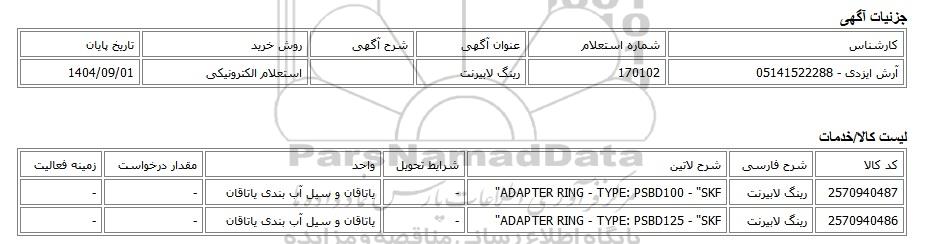تلفن:5- 88349670 (021) فکس: 88349673 (021) Website: www.ParsNamadData.com E-mail: Info@ParsNamadData.com استعلام الکترونیکی رینگ لابیرنت