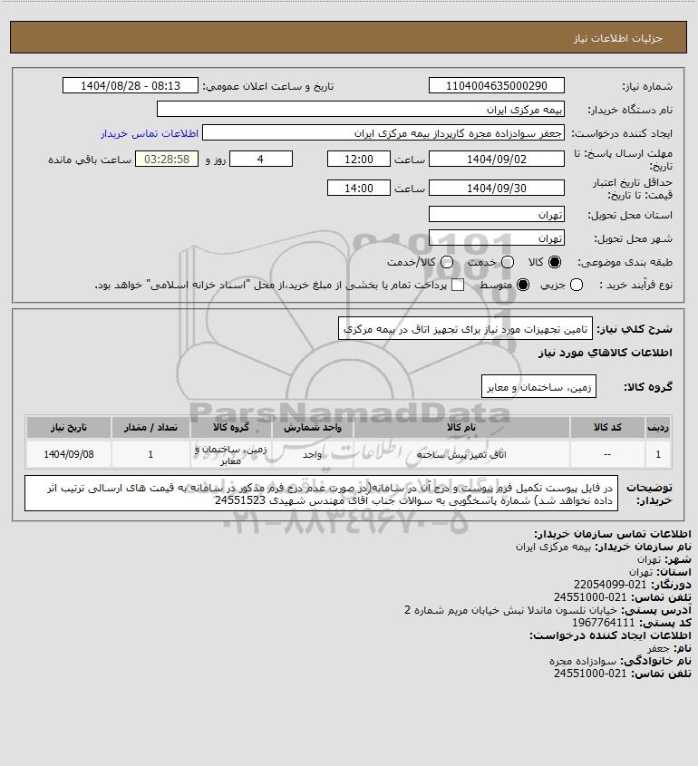 تلفن:5- 88349670 (021) فکس: 88349673 (021) Website: www.ParsNamadData.com E-mail: Info@ParsNamadData.com استعلام تامین تجهیزات مورد نیاز برای تجهیز اتاق در بیمه مرکزی